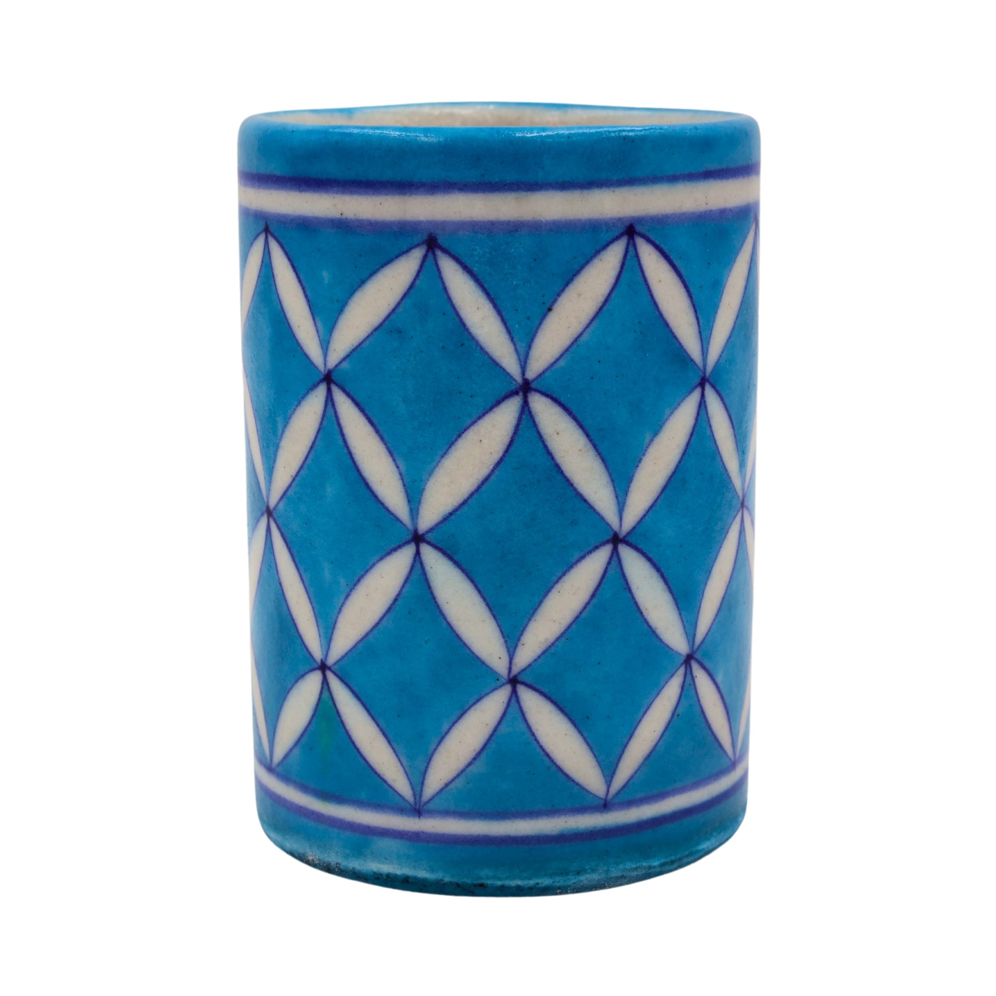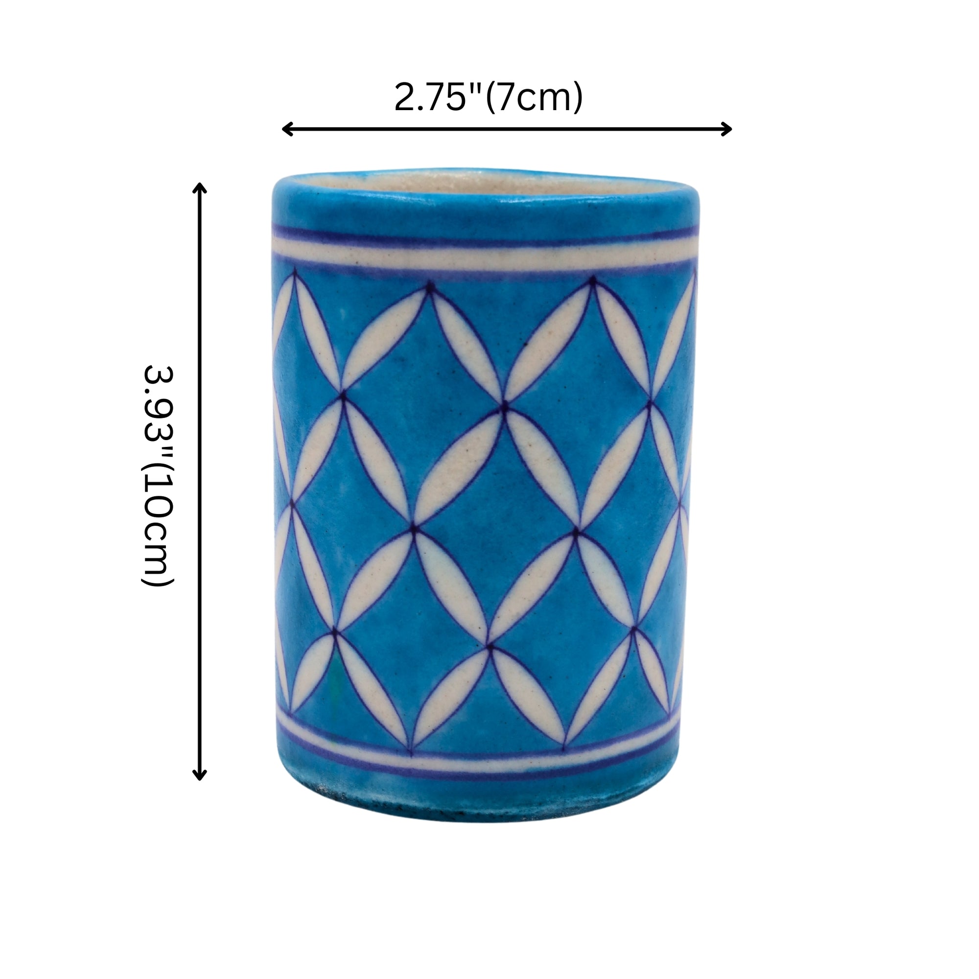 - Handcrafted Excellence: Made using traditional blue pottery techniques, this pen stand is crafted from a special clay mix that includes quartz stone powder, powdered glass, Multani mitti (Fuller's Earth), gum, water, and sodium bicarbonate. Each piece is meticulously shaped and painted by hand, ensuring that every item is unique.