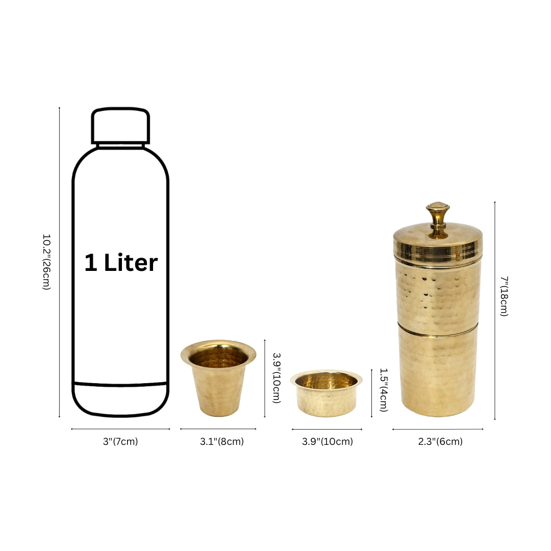 Brass Glossy Dabara-Tumbler set with coffee filter (Large)