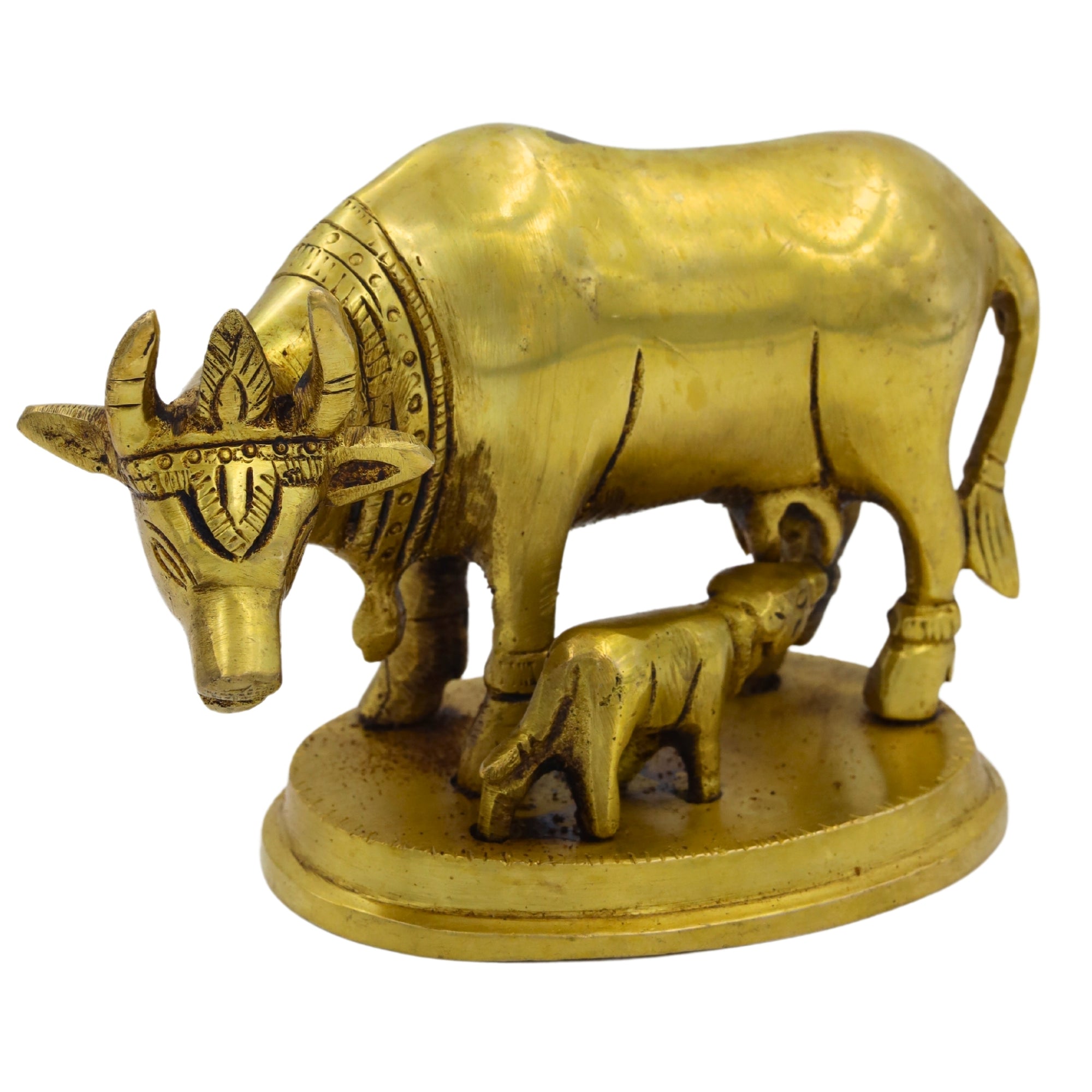 Brass Kamdhenu Cow with Calf | Spiritual Showpiece for Home, Pooja & Gifts