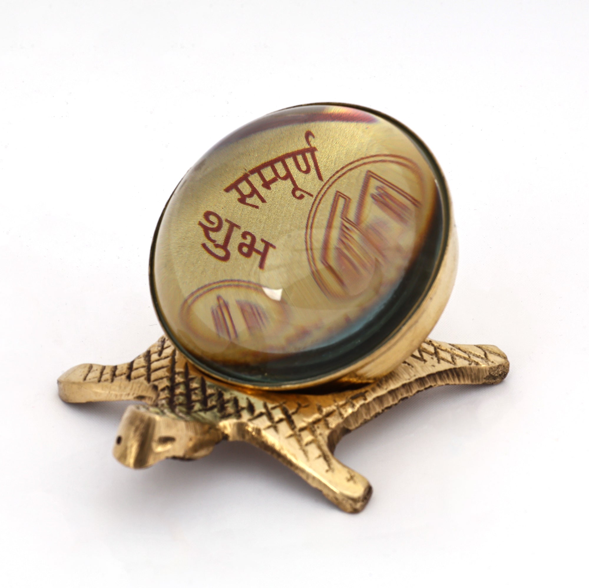 Brass Tortoise Shree Yantra (Small) with Tilted glass Lens