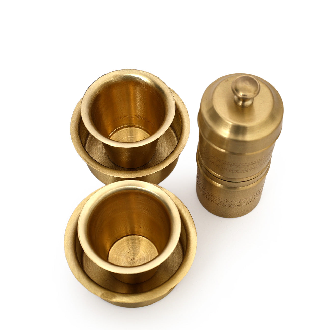 Brass Tumbler- Dabara set with coffee filter (2 Dabara set and 1 coffee filter)