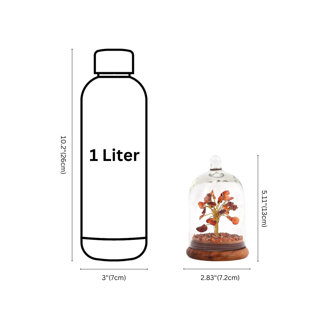 Infuse your space with vitality and motivation through the Carnelian Glass Dome Wish Tree. This handcrafted piece features energizing Carnelian stone chips arranged into a wish tree, safely encased within a clear glass dome. The dome is mounted on a wooden base and sealed with a rubber lining to ensure the glass stays firmly in place.