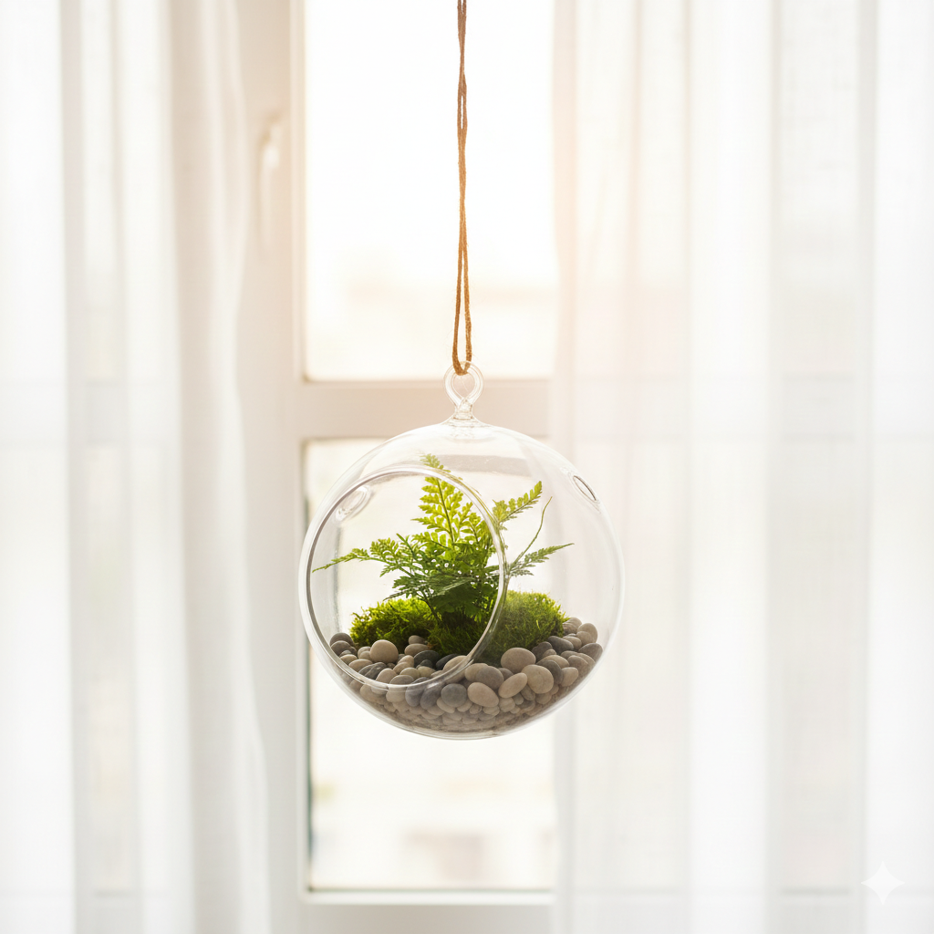 Create a contemporary yet rustic ambience with this elegant glass hanging ball. Perfect for showcasing small plants, candles, or decorative pieces, its transparent design and jute string hanger offer versatility and charm. Whether used indoors or outdoors, in a room, garden, or event space, it brings a refined, stylish touch to any setting.