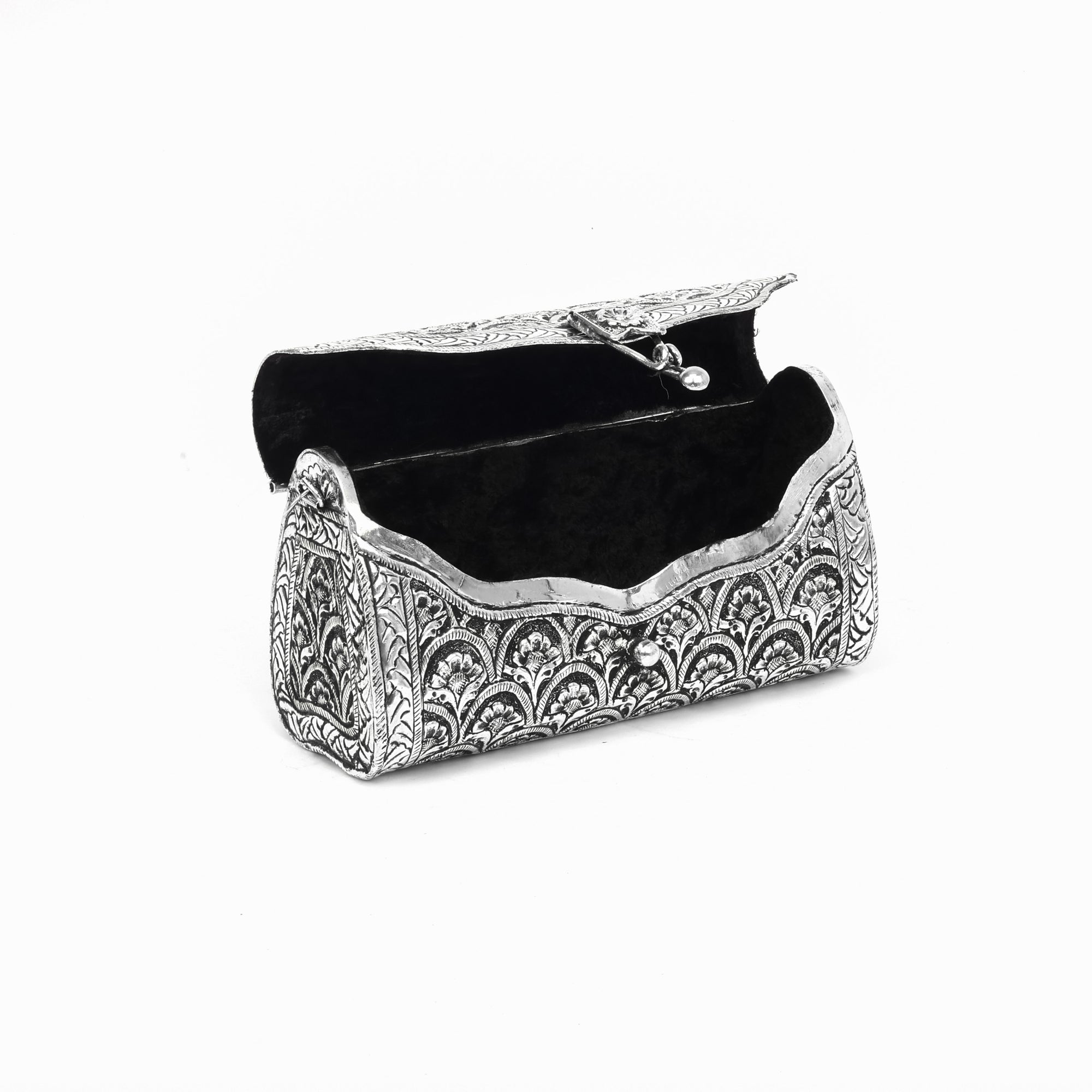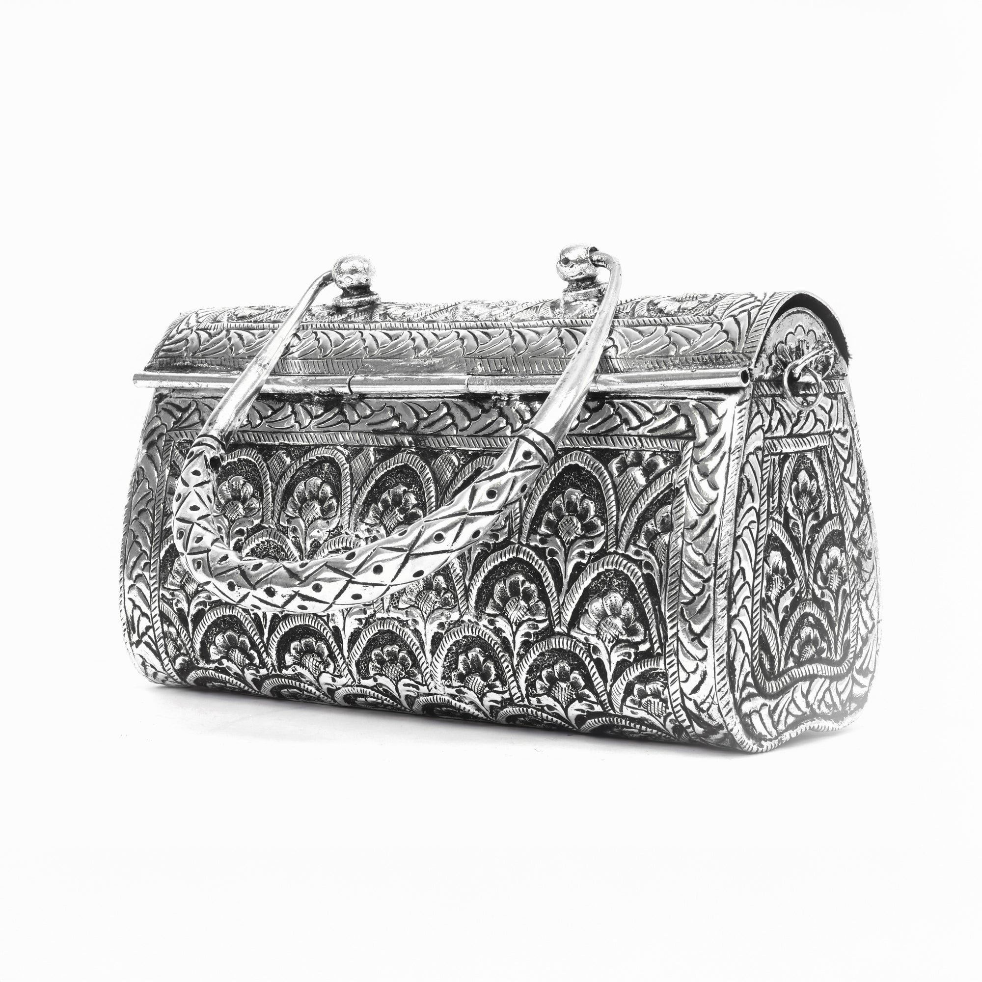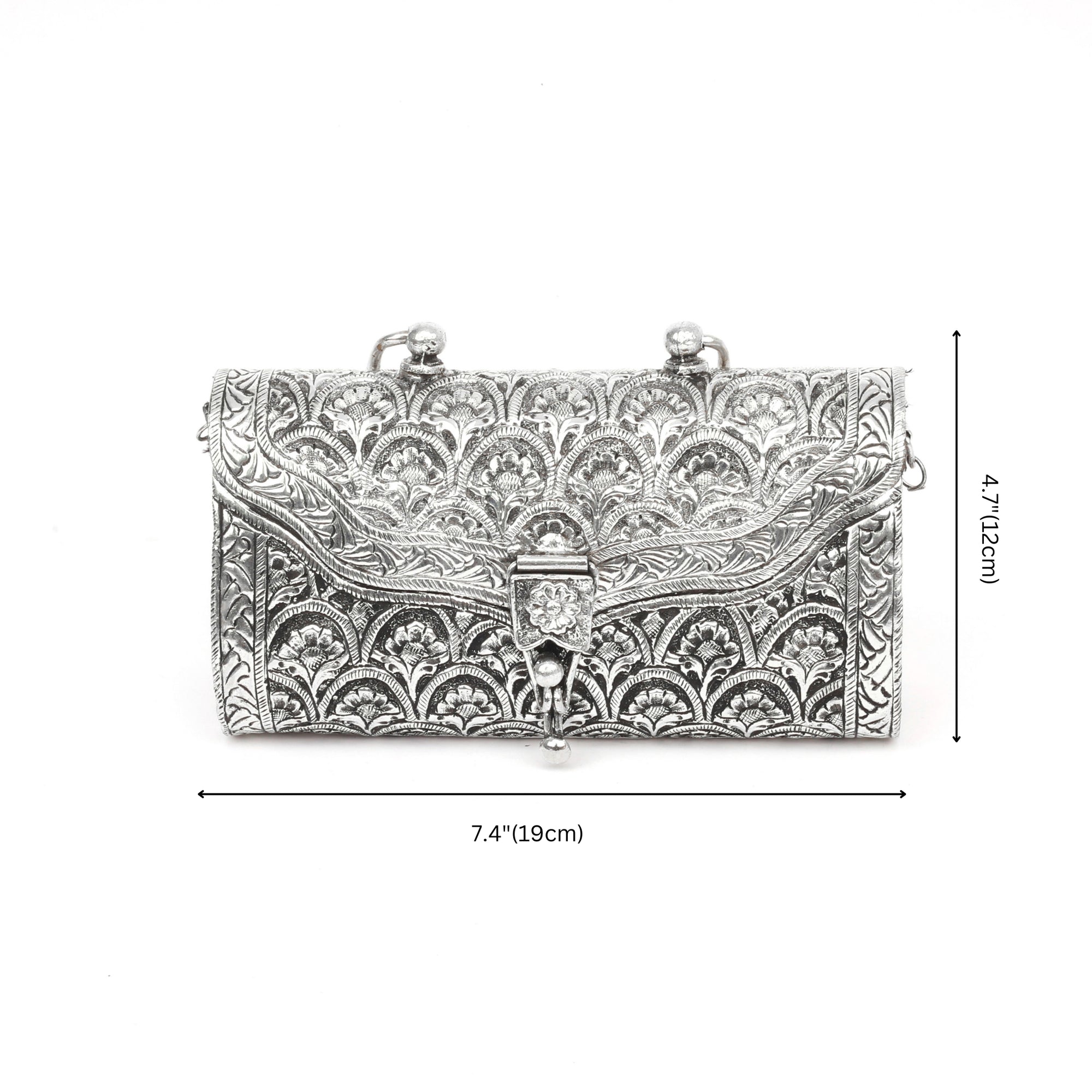 Carry eternal beauty with this German Silver Clutch. The ornate patterns on its exterior and the spacious interior make it both functional and fashionable. Whether for a wedding or a gala, this clutch is designed to dazzle and delight.