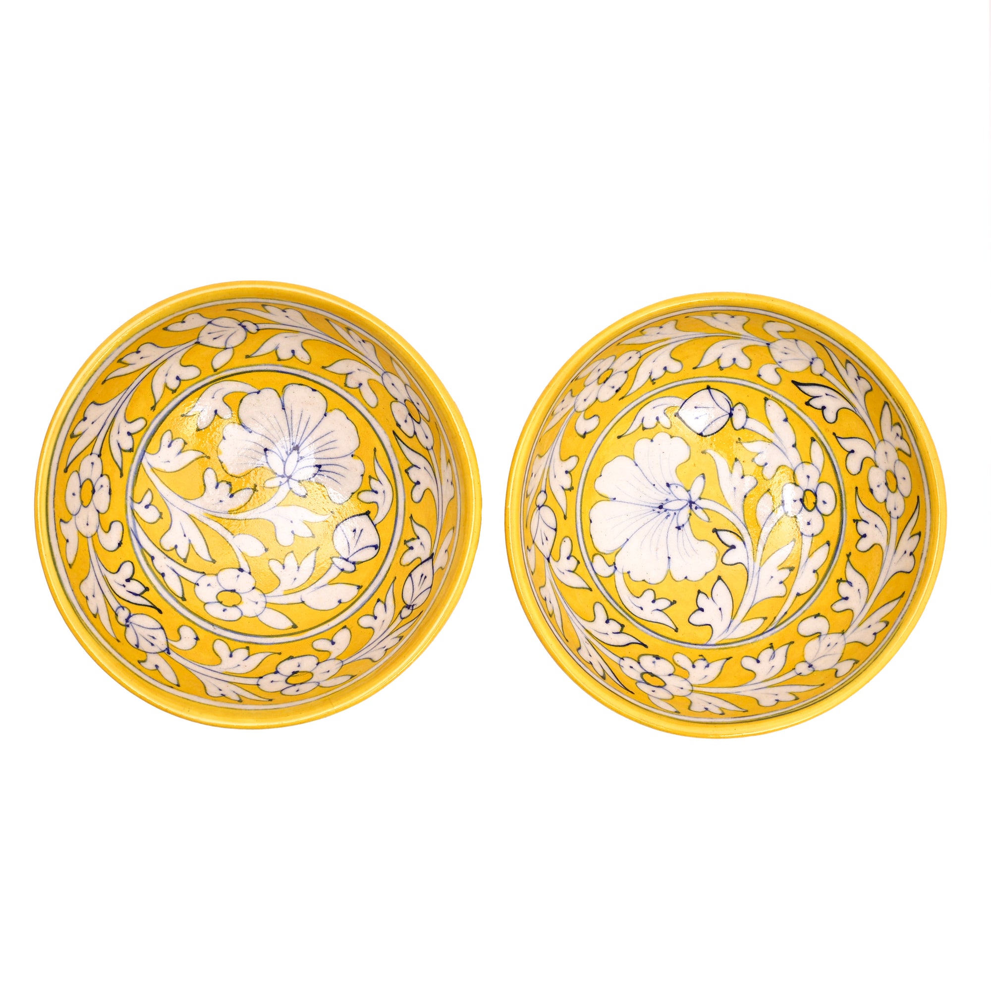 Handcrafted Blue Pottery Round Bowls—Yellow