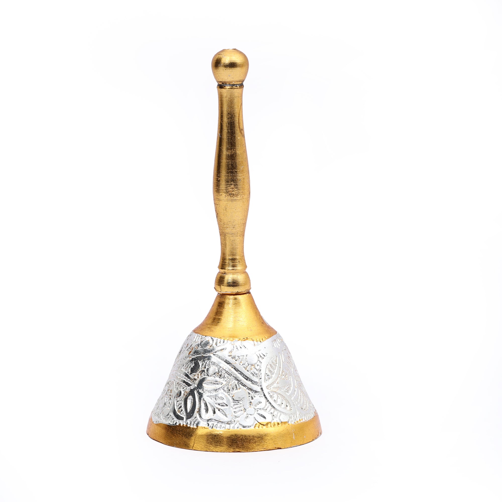 - Hand embossed brass pooja thali set with gold and silver finish.