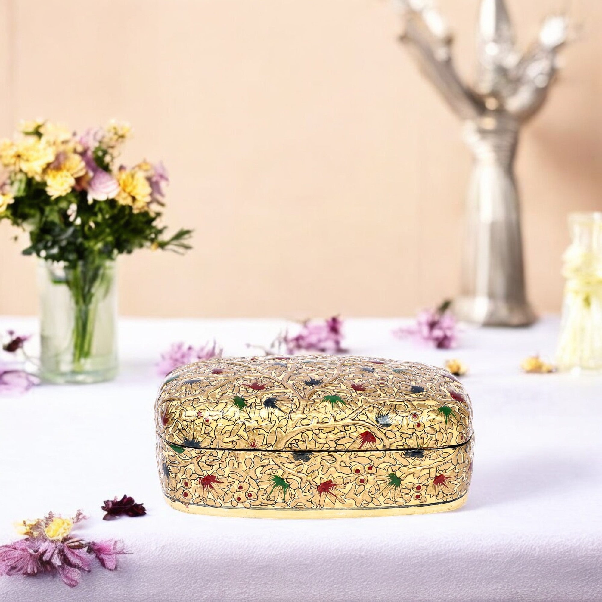 Handcrafted Kashmiri Paper Mache Multi-Utility Box— Golden