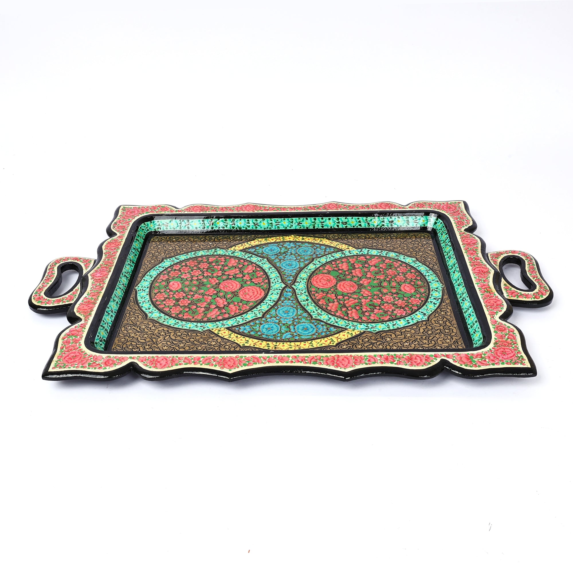 Handcrafted Kashmiri Paper Mache Rectangular Tray—Multicolour