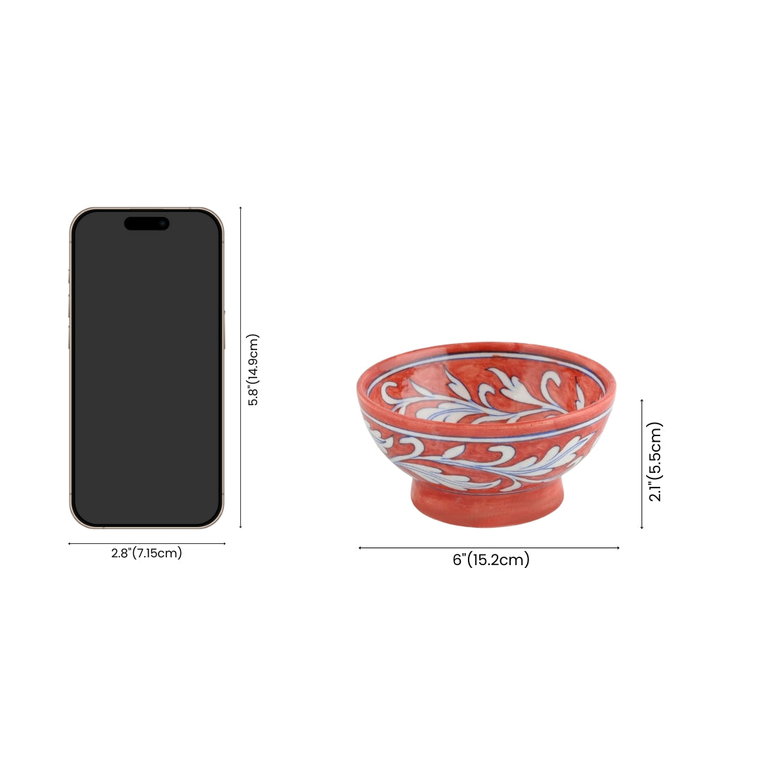 Bold and beautiful, this reddish-brown bowl set bring vibrancy to any space. Crafted by skilled artisans, its floral motifs highlight the finesse of Rajasthan’s Blue Pottery tradition. Whether used for serving or display, these bowls radiate a timeless appeal, making them a thoughtful gift or a striking home accent.