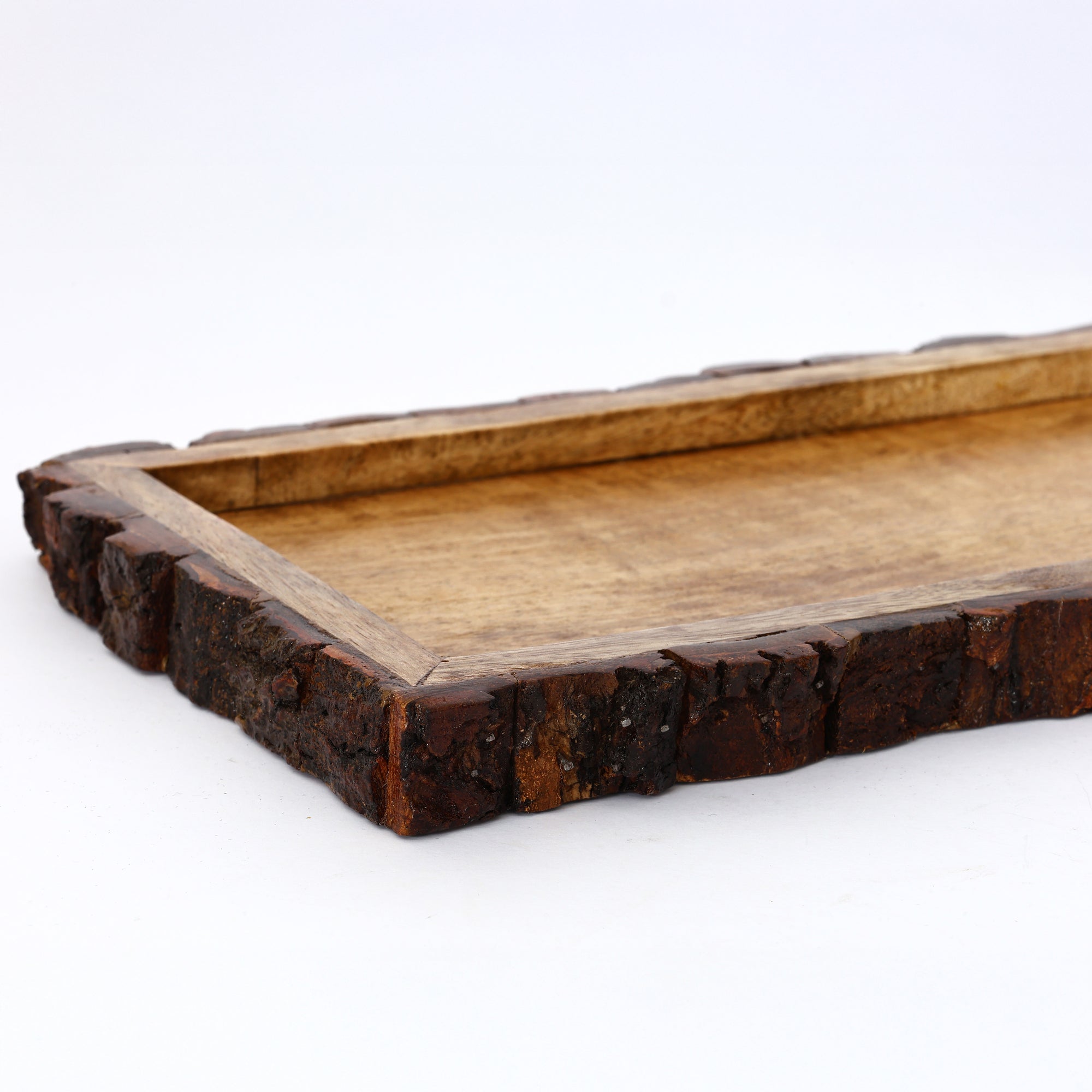 Handcrafted Rustic Wooden Serving Tray – Natural Bark Edge Decorative Platter