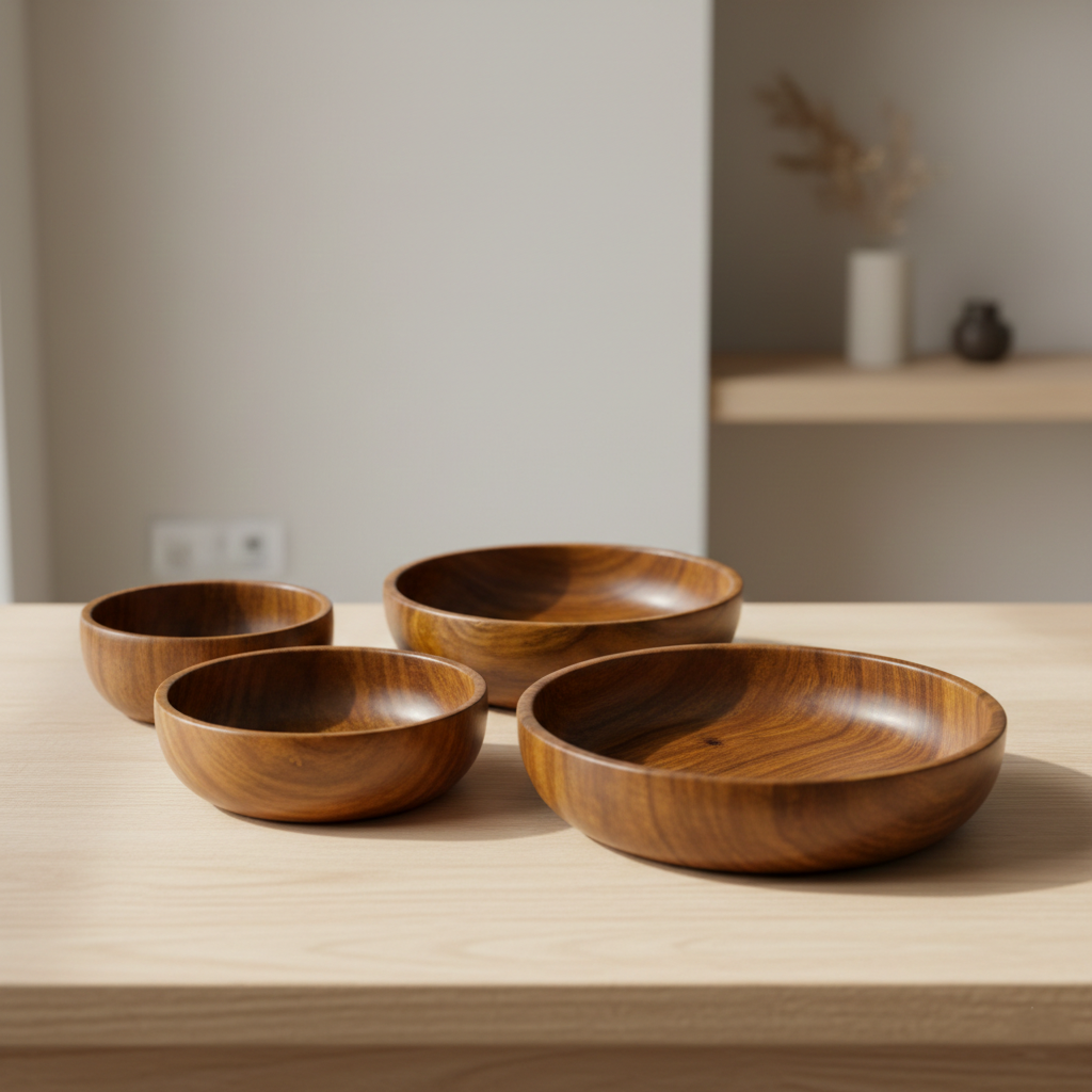 Handcrafted Wooden Bowls Set – Kitchen Serving Item