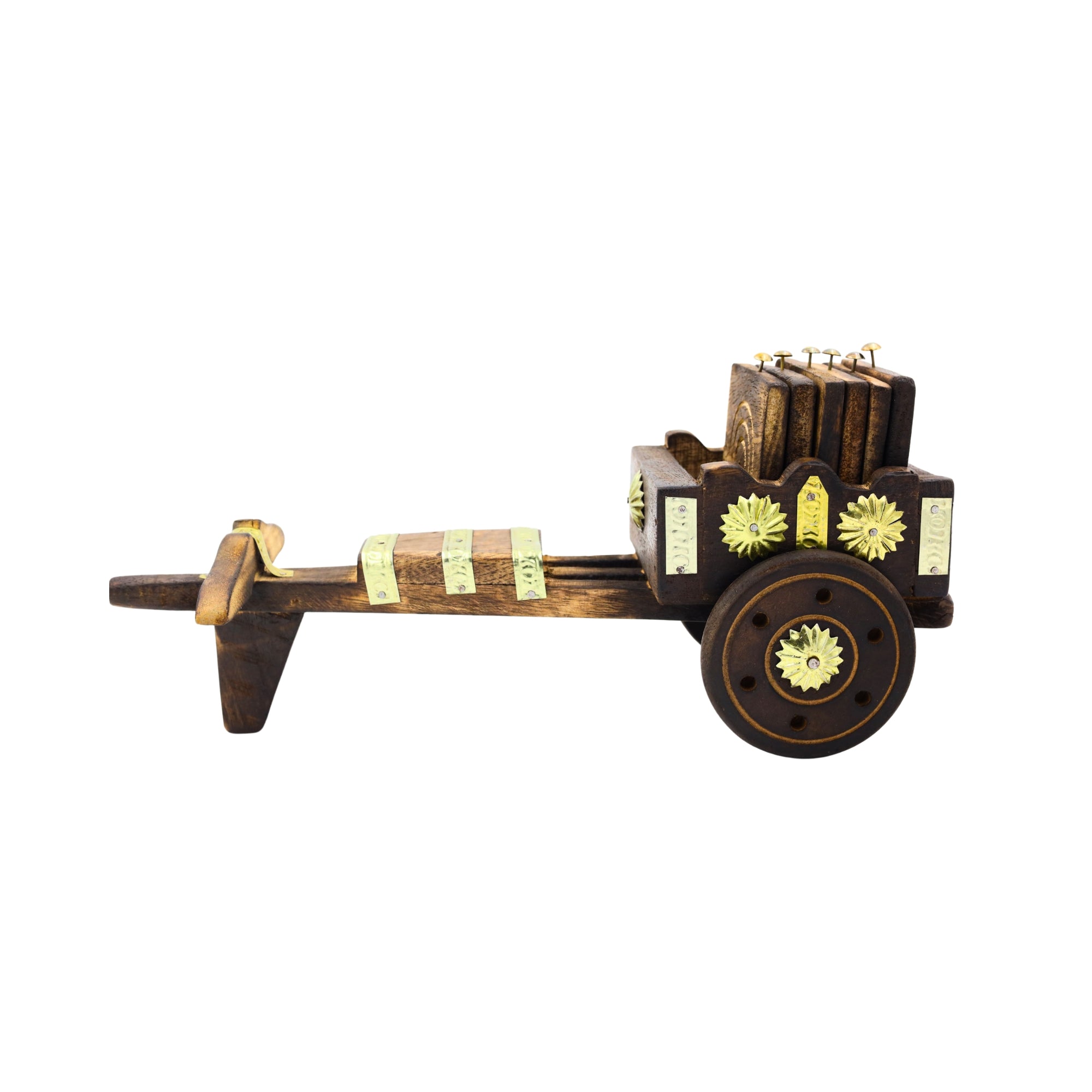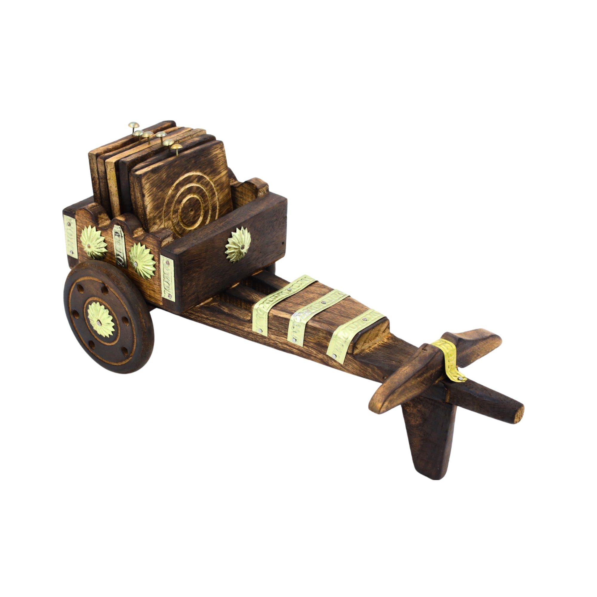 Handcrafted Wooden Bullock Cart Coaster Set - Rustic Table Décor