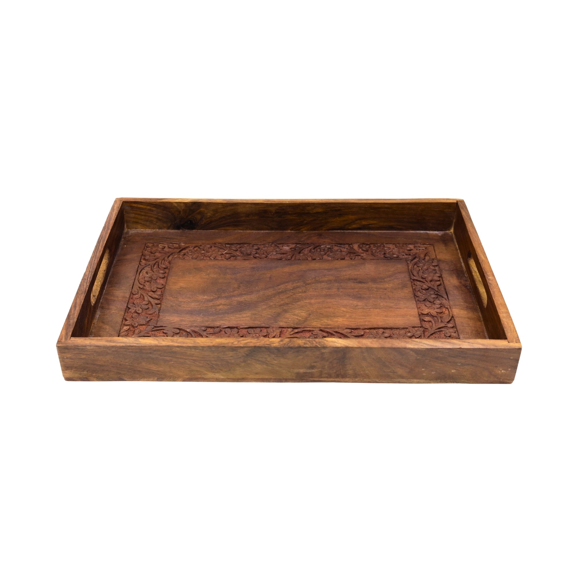 Handcrafted Wooden Serving Tray – Carved Floral Design
