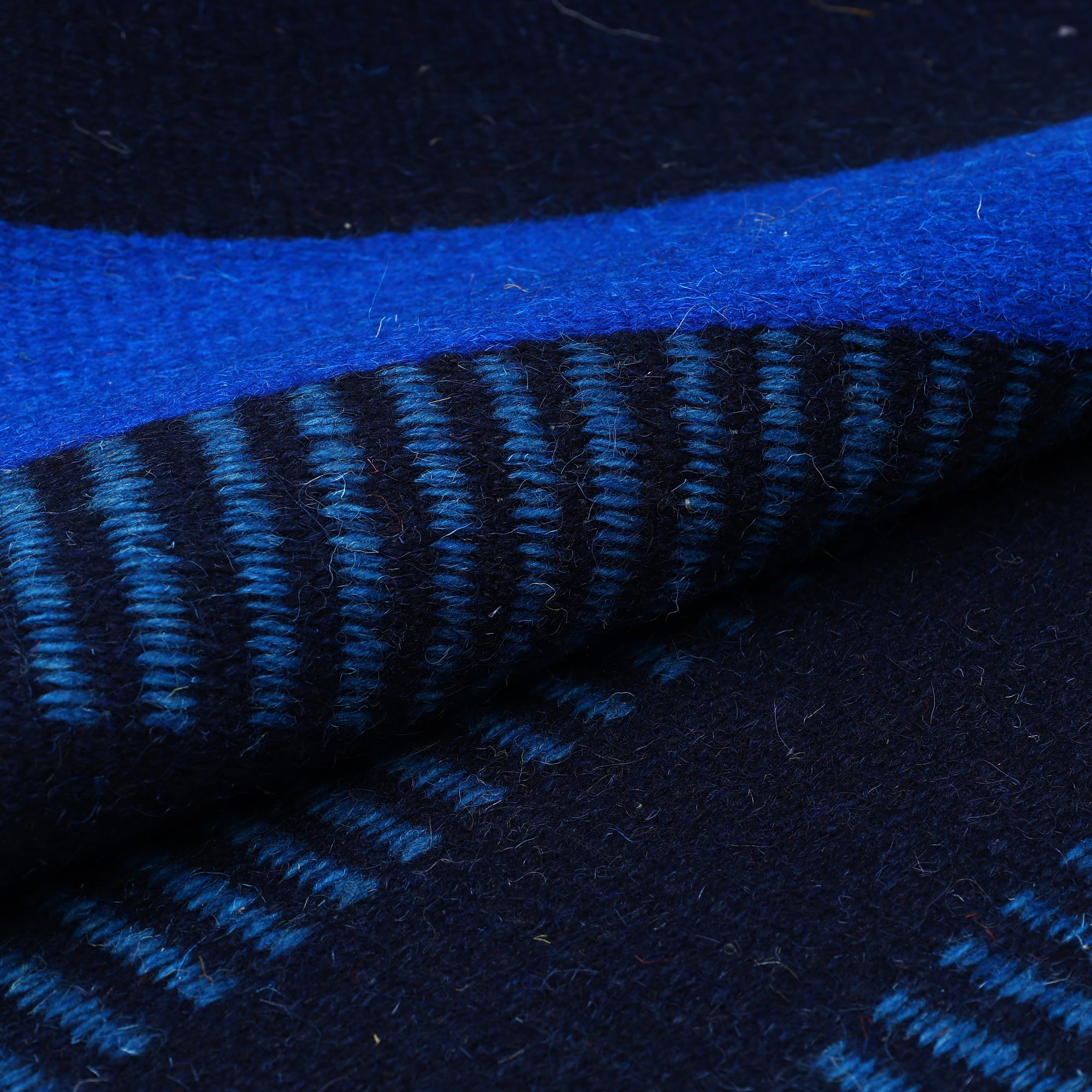 Handwoven Jawaja Wool Black and Blue Stripped Dhurrie - Pet Comfort Mat