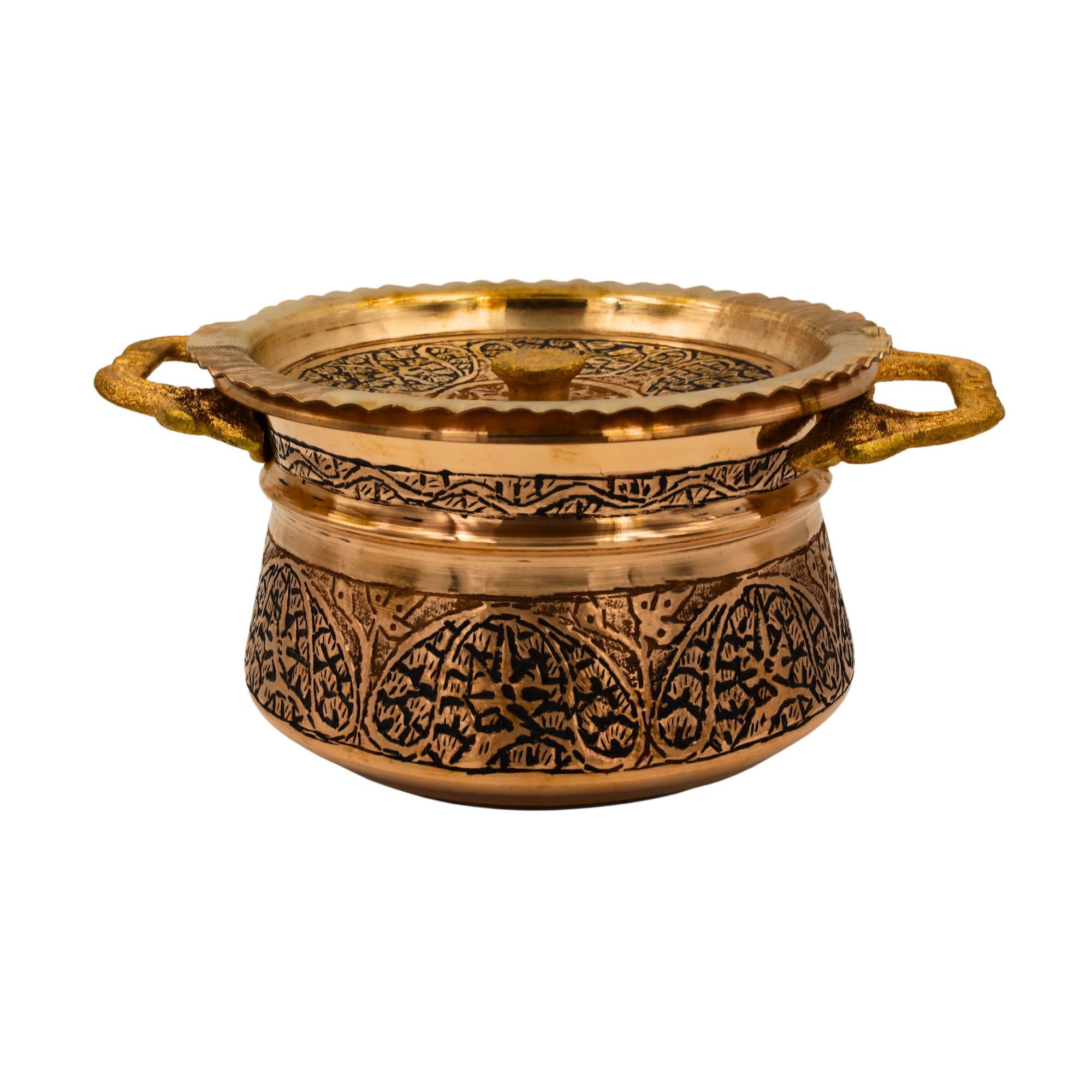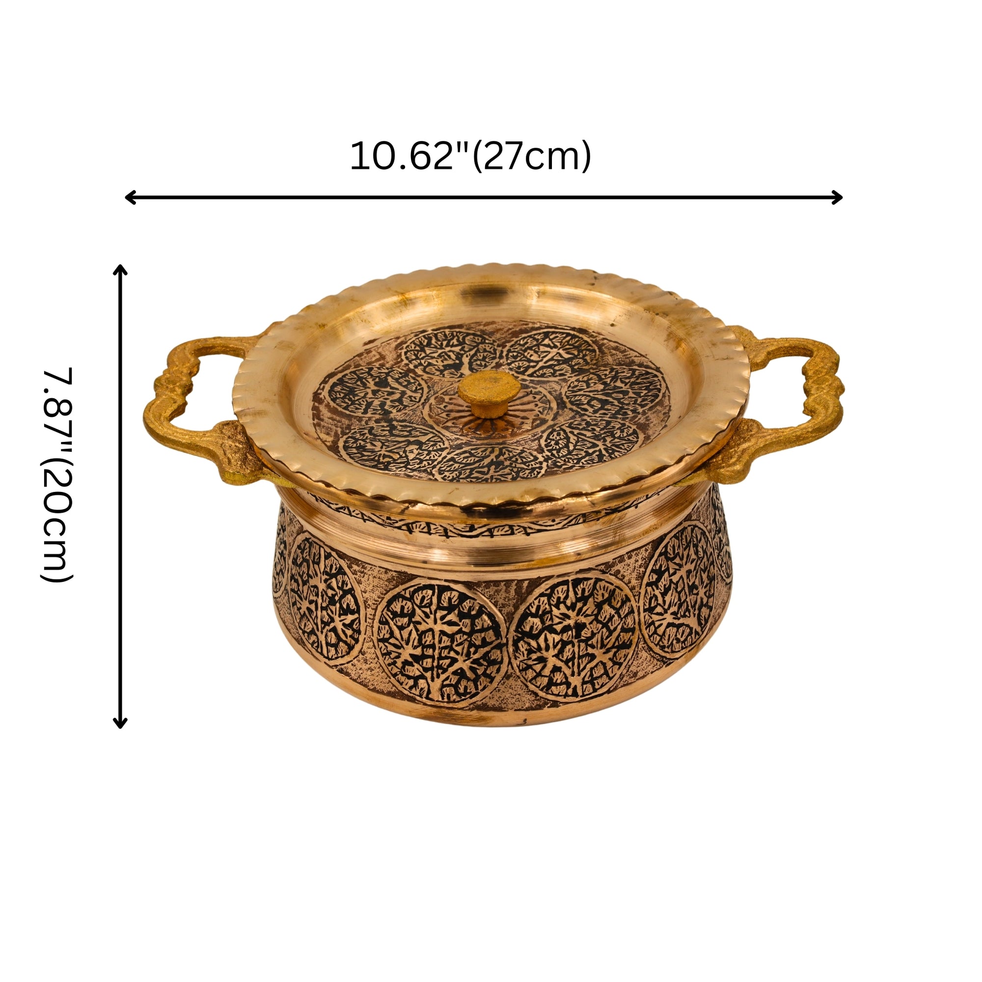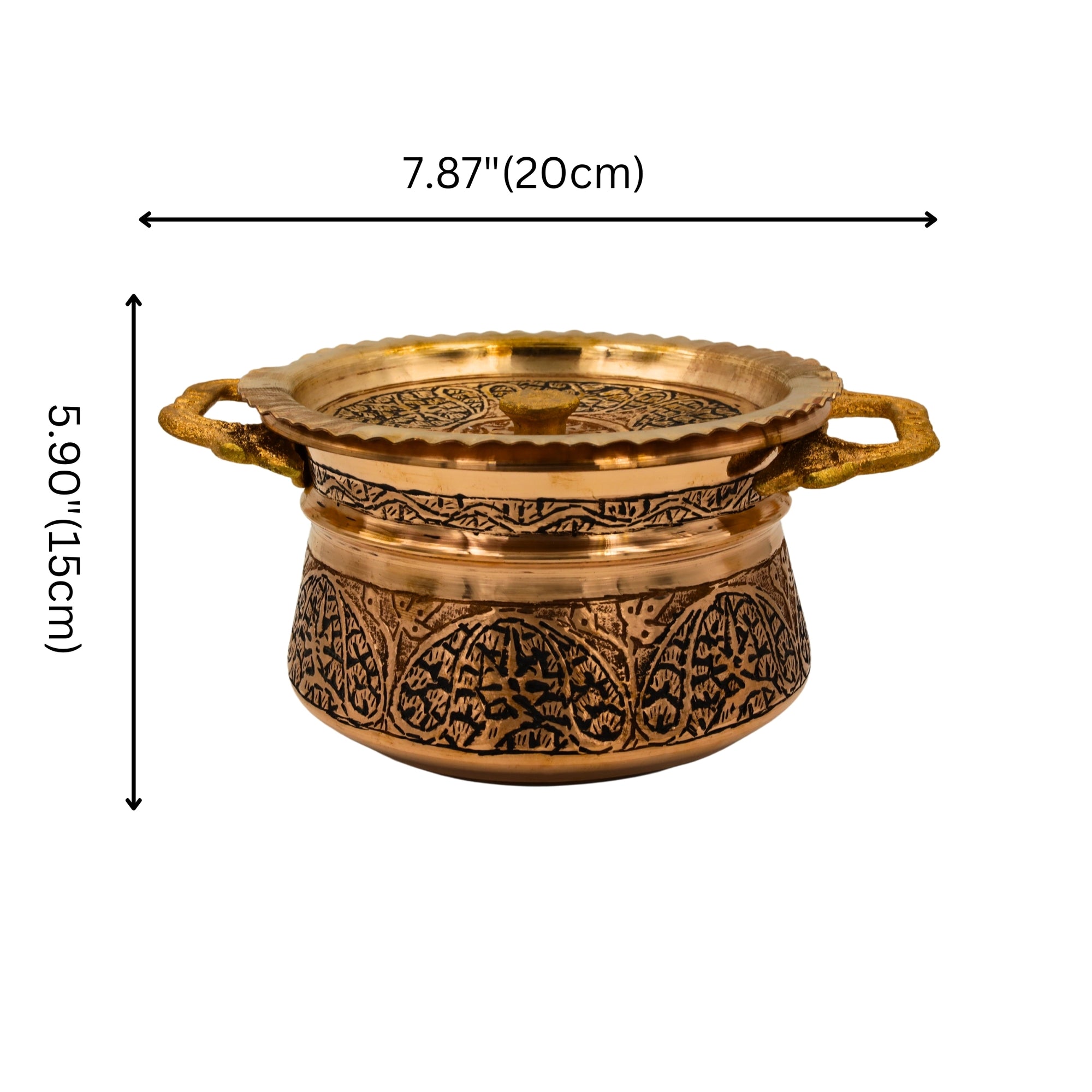 Explore the charm of Kashmiri culture with our Copperware Handi, featuring intricate Kandkari designs crafted by skilled artisans. This elegant vessel adds sophistication to your dining experience and is a highly desirable addition to any table.
