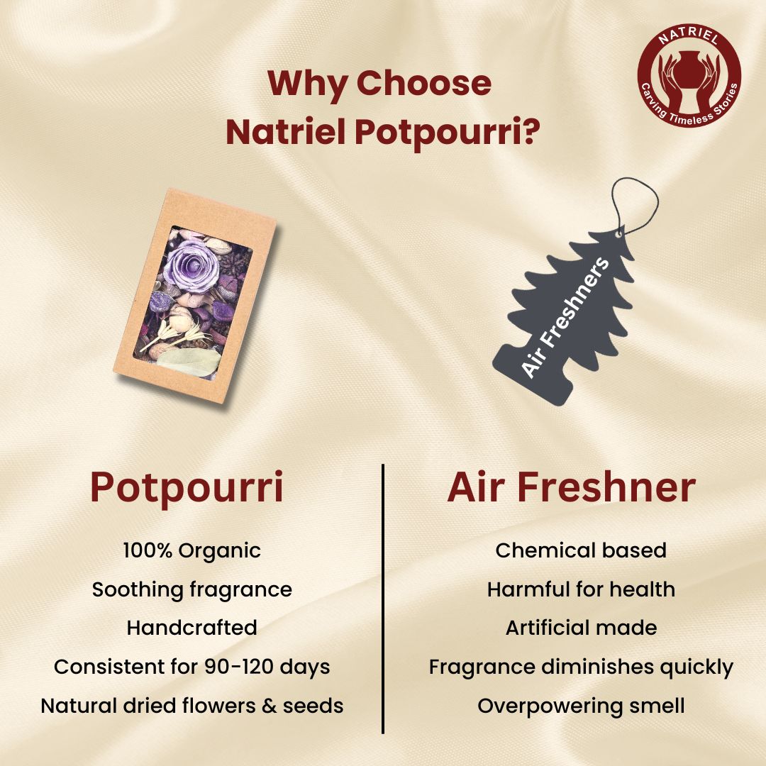 - Naturally made with dried flowers, seeds, and leaves.