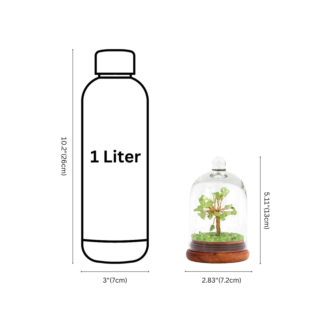 Add a touch of renewal and emotional clarity to your surroundings with the Peridot Glass Dome Wish Tree. This elegant piece is crafted using genuine Peridot stone chips, shaped into a wish tree and encased within a sleek glass dome. It is mounted on a wooden base, secured with a rubber lining to keep the dome fixed in place and prevent slipping.