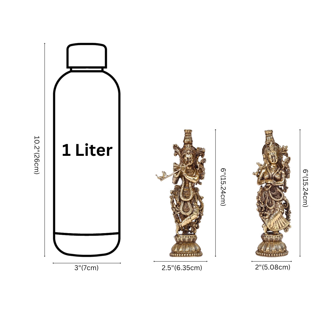 Place this exquisitely carved 'Radha Krishna Pair' figurine, crafted from Ethnic Brass, in your worship area, and invite the divine presence of Lord Krishna and his beloved Radha into your space. Let their eternal bond and the music of Krishna’s flute fill your surroundings with serenity, spiritual bliss, and cosmic harmony. Their graceful forms symbolize love, devotion, and the sacred union of the divine, making this figurine a powerful focal point for meditation and worship. The detailed craftsmanship of this figurine not only reflects the rich cultural heritage of Indian artistry but also makes it highly resistant to the elements, ensuring its lasting beauty. Each curve and contour is meticulously designed to evoke the divine energy of Radha and Krishna, enhancing the spiritual atmosphere of your home or temple. With its divine aesthetic and timeless appeal, this figurine serves as a constant reminder of divine love and the eternal flow of cosmic energy. Whether displayed on an altar, in a living room, or in a spiritual space, this 'Radha Krishna Pair' figurine serves as both a powerful symbol of divine connection and an elegant piece of art that will infuse your domain with tranquility, beauty, and positive energy.Place this exquisitely carved 'Radha Krishna Pair' figurine, crafted from Ethnic Brass, in your worship area, and invite the divine presence of Lord Krishna and his beloved Radha into your space. Let their eternal bond and the music of Krishna’s flute fill your surroundings with serenity, spiritual bliss, and cosmic harmony. Their graceful forms symbolize love, devotion, and the sacred union of the divine, making this figurine a powerful focal point for meditation and worship.