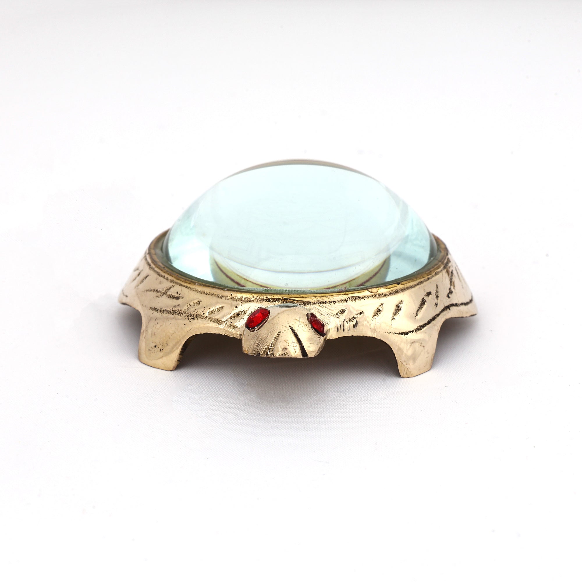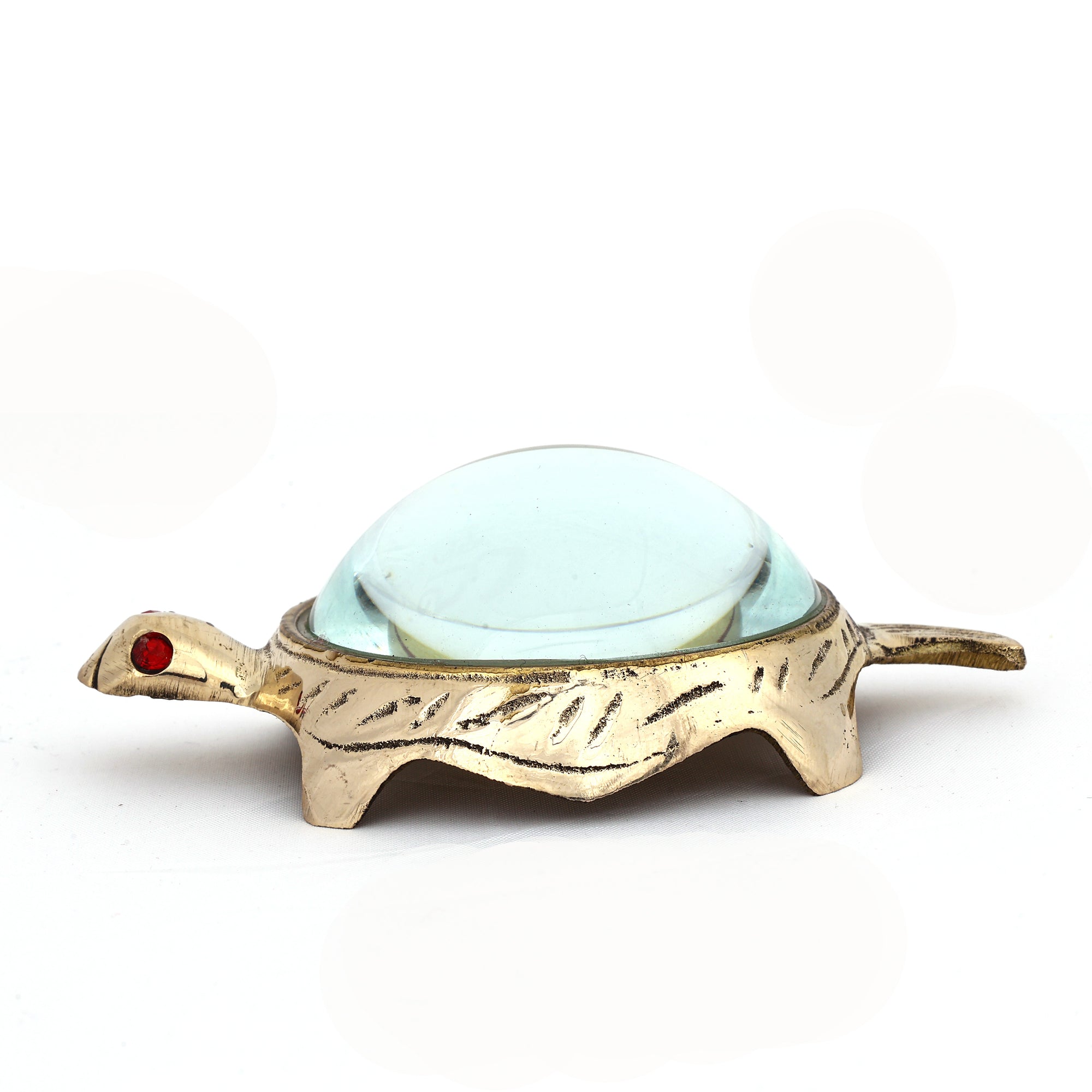 Small Glass Shell Brass Tortoise Figurine - Feng Shui Yantra