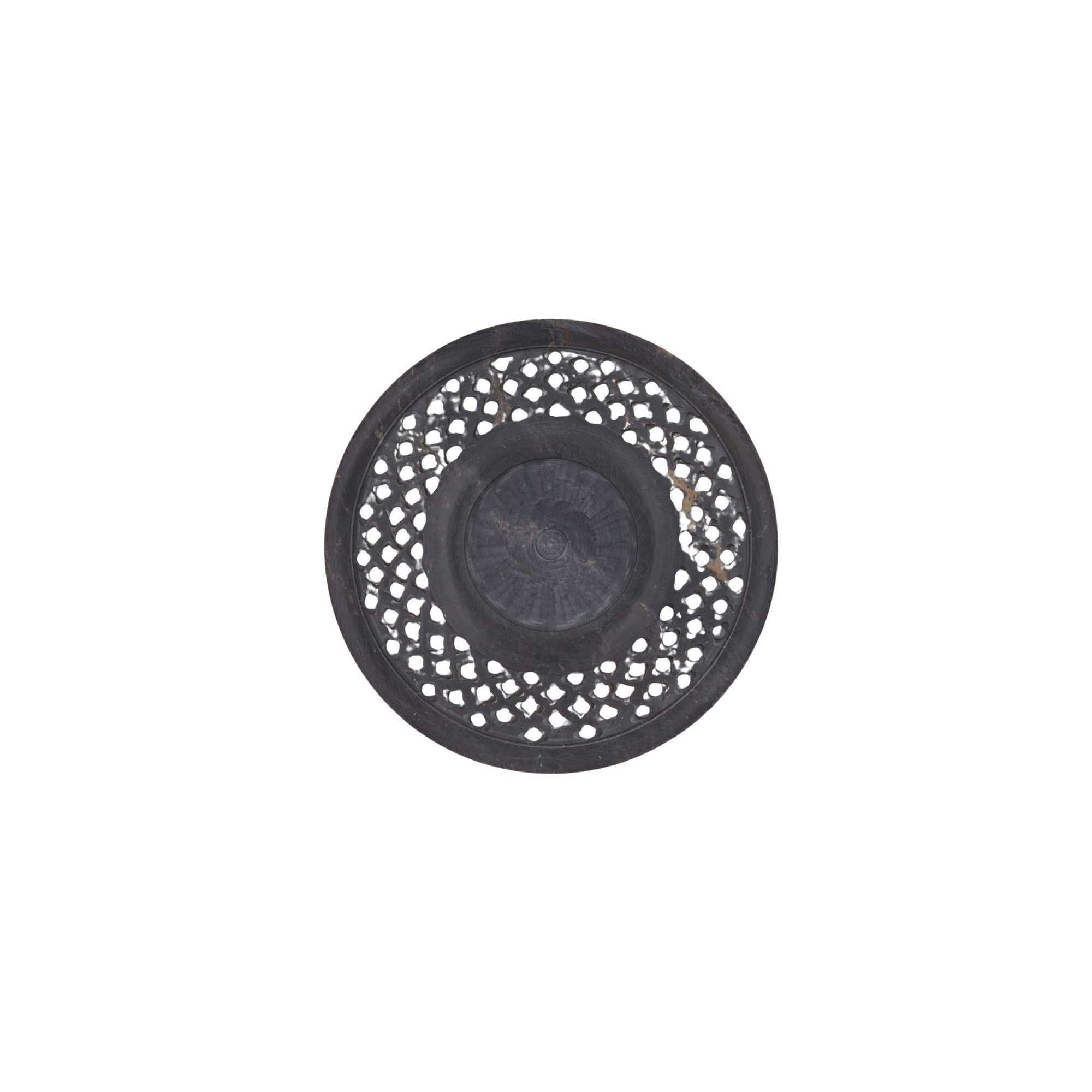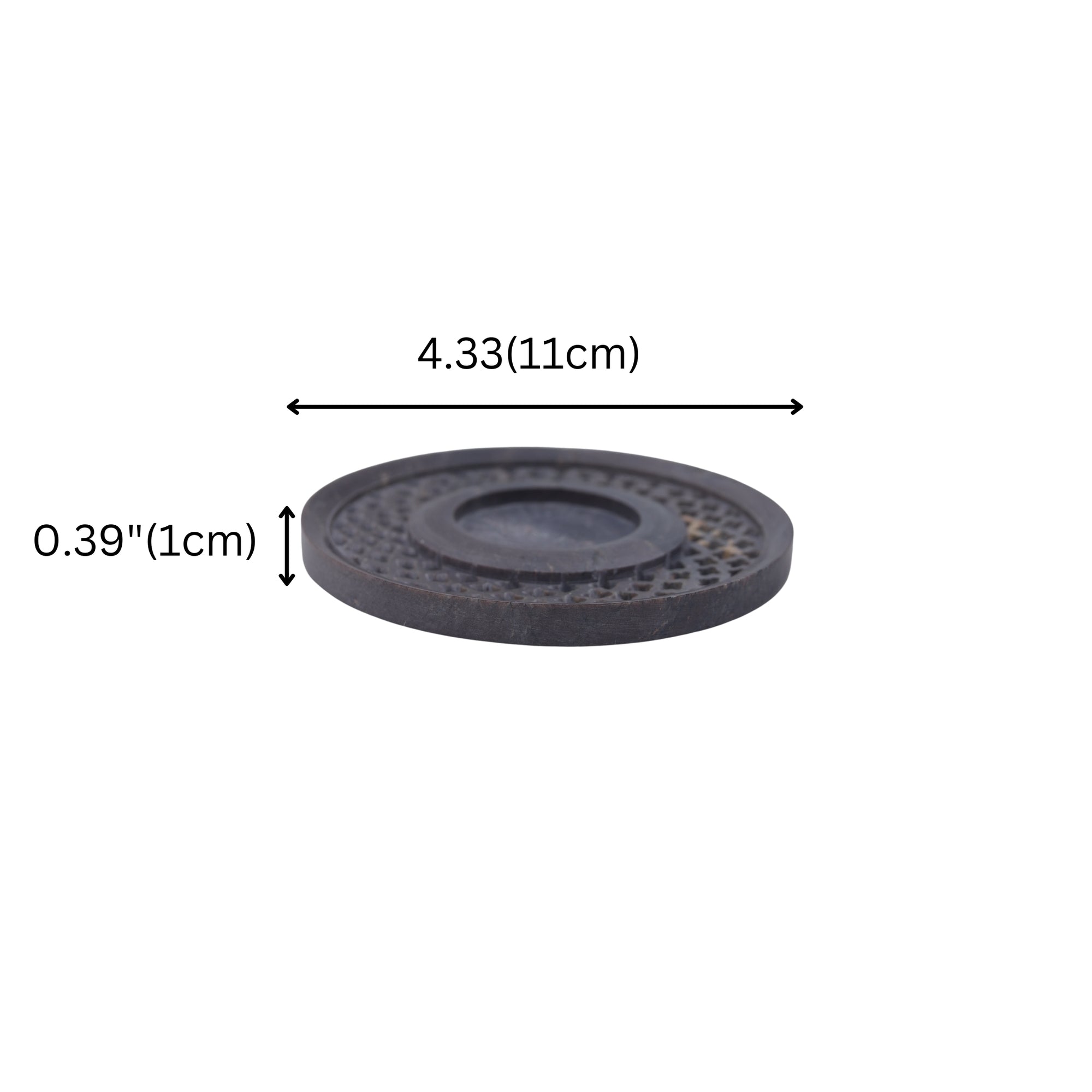 Add a touch of natural elegance with this hand-carved soapstone candle plate. Featuring intricate floral and Jaali patterns, it offers a charming and functional way to display candles. The raised edges prevent wax spills, and its timeless design suits any décor.